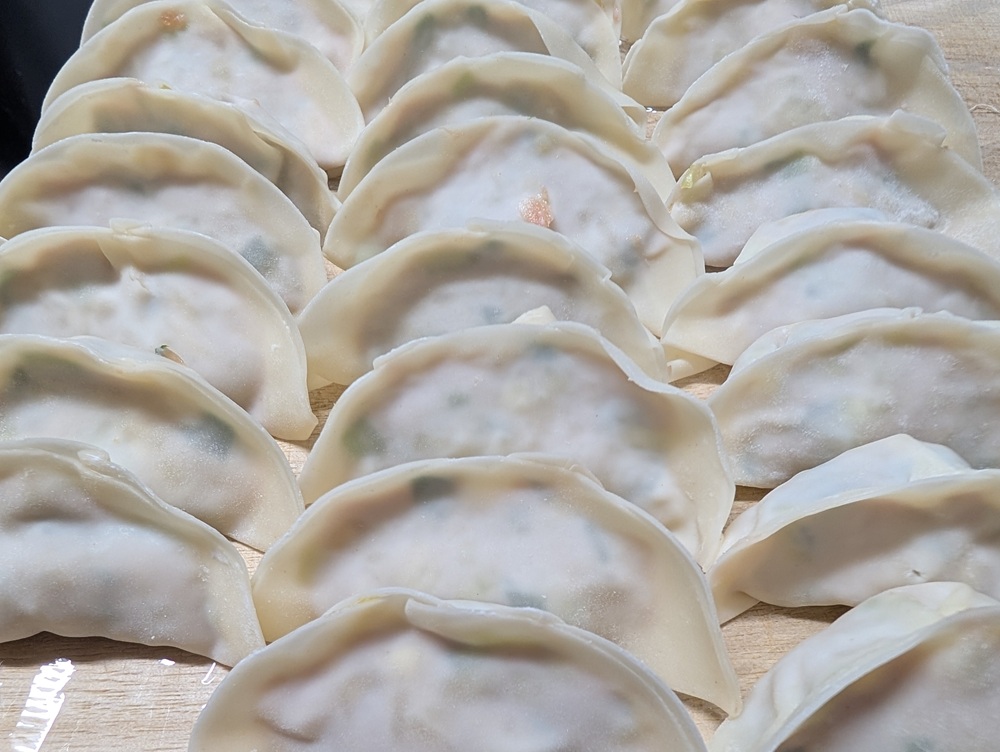 子どもたちの「餃子が食べたい!」の声に応えて、60個包みました。